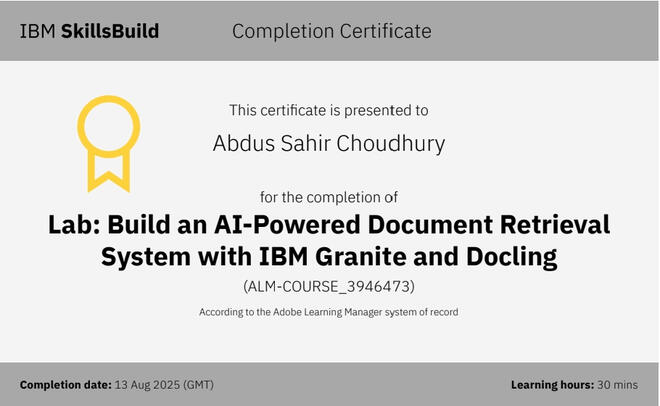 IBM SkillsBuild - Lab: Build an AI-Powered Document Retrieval System With IBM Granite & Docling.